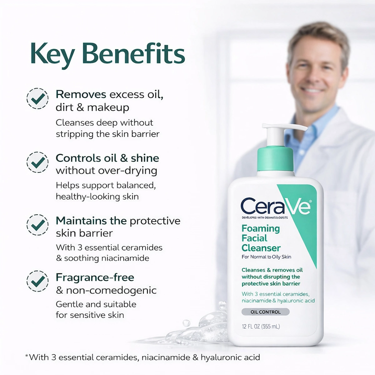 A gentle foaming cleanser developed to remove excess oil while protecting the skin barrier.
