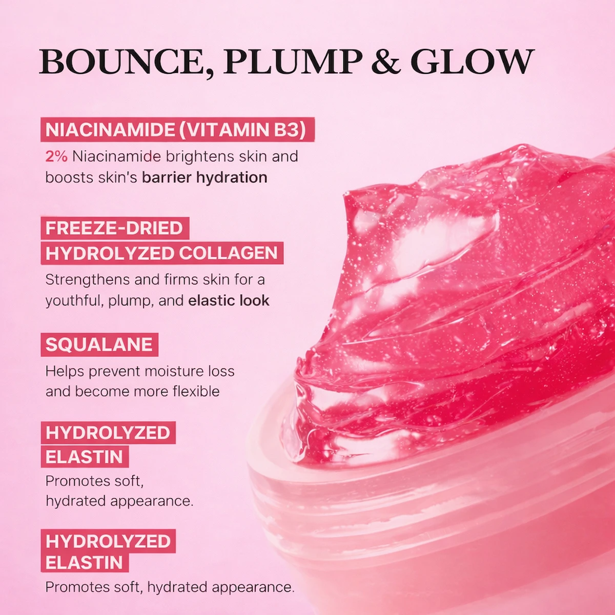 A refreshing jelly-textured cream formulated to hydrate while enhancing skin bounce and glow.