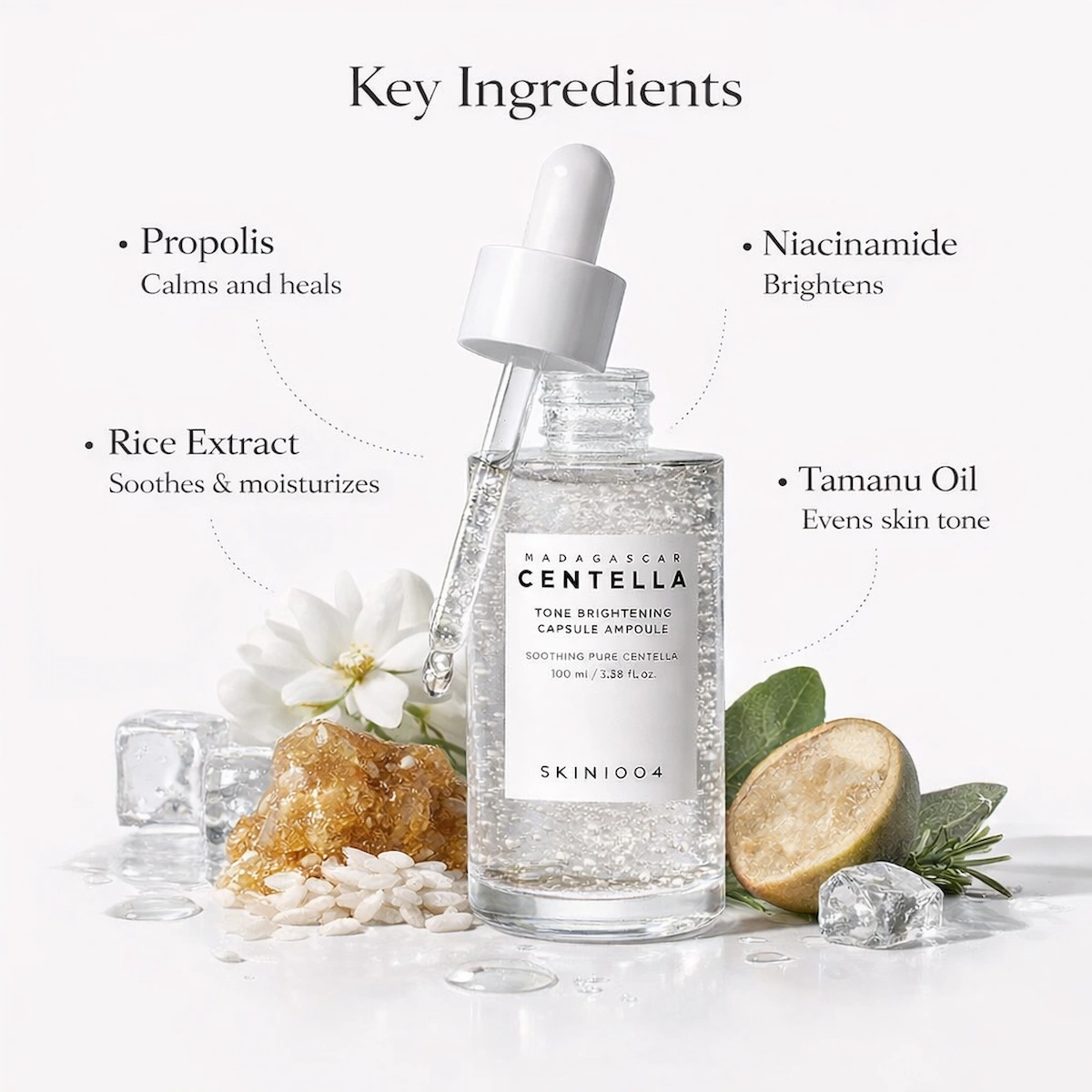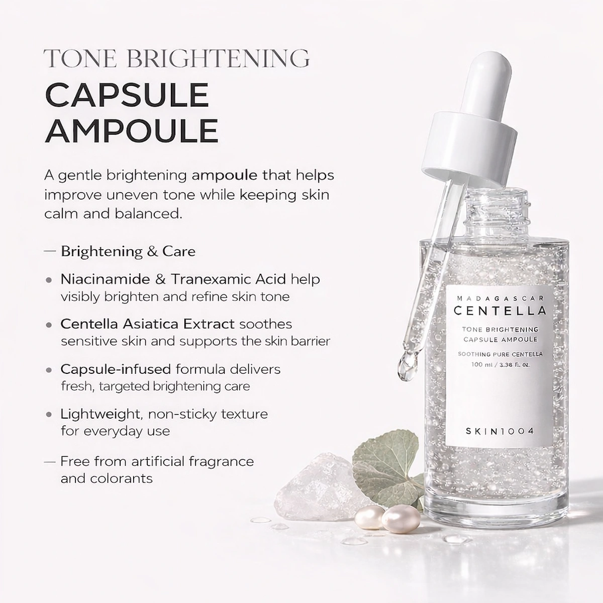 A gentle brightening ampoule designed to improve skin clarity while keeping the skin calm, hydrated, and comfortable.